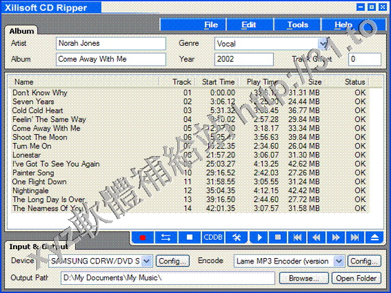 互轉換. 還能從遠端CDDB數據庫獲取CD資訊.CD Ripper支援ID3 1和2 標籤.