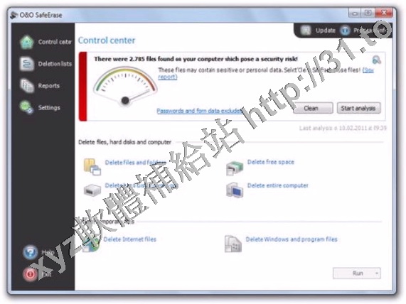 O&O SafeErase 隨著一次單擊你安全地和永遠地刪除文件,文件夾和硬碟分區的數據,無